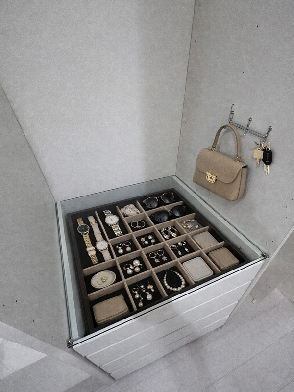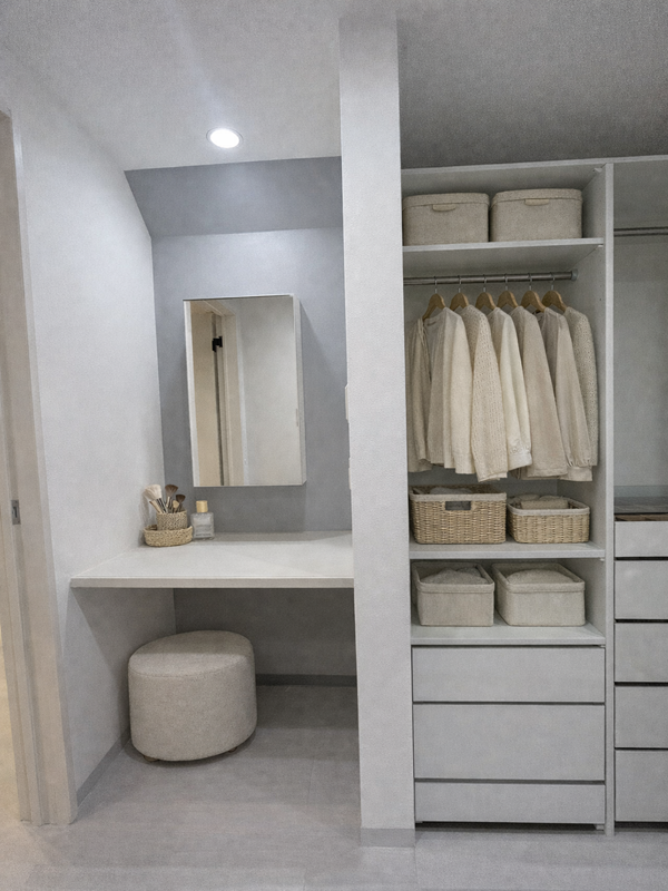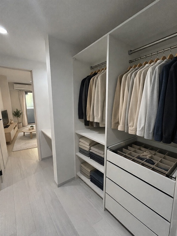 特に魅力なのが、大容量のクローゼット。衣類はもちろん、時計やアクセサリーなどの小物を美しく収納できるケース付きで、まるでショップのような“魅せる収納”が実現。毎日のコーディネートも楽しくなる空間です。