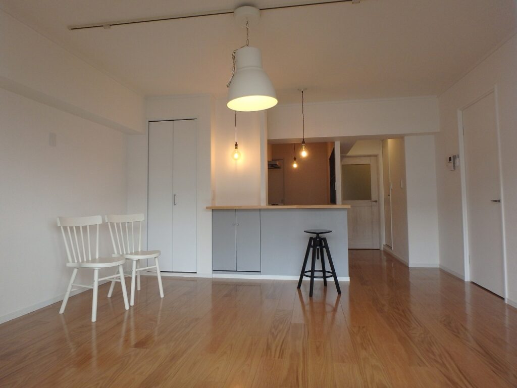 約22帖の広々としたリビングは圧巻です!!室内は二重サッシとなっており、元々閑静な住宅街に位置するのに、更に静か!!室内には大容量のウオークインクローゼットやキッチンから玄関が見えるお洒落な小窓、玄関の洗面台などあらゆる個所に工夫を凝らしたフルリノベーションのおすすめ物件です!!!